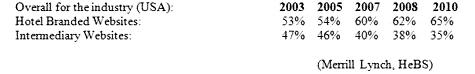 In 2006, the major hotel brands enjoyed an above the average direct vs. indirect online ratio of 81.4% vs. 18.6%.